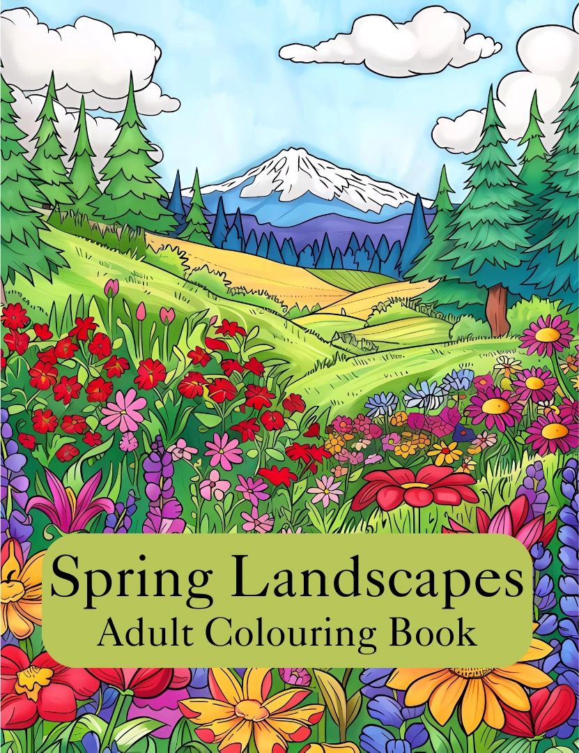 Embark on a Vibrant Canvas Colouring journey through the beautiful landscapes of Spring in our charming Adult Colouring Book: Spring Landscapes.